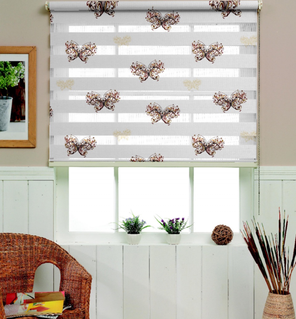 kelebek baskı genç odası zebra perde Birillant / İnci perde