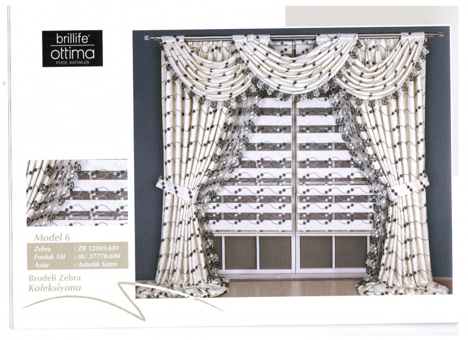 Brode İşlemeli zebra perde Birillant / İnci Perde
