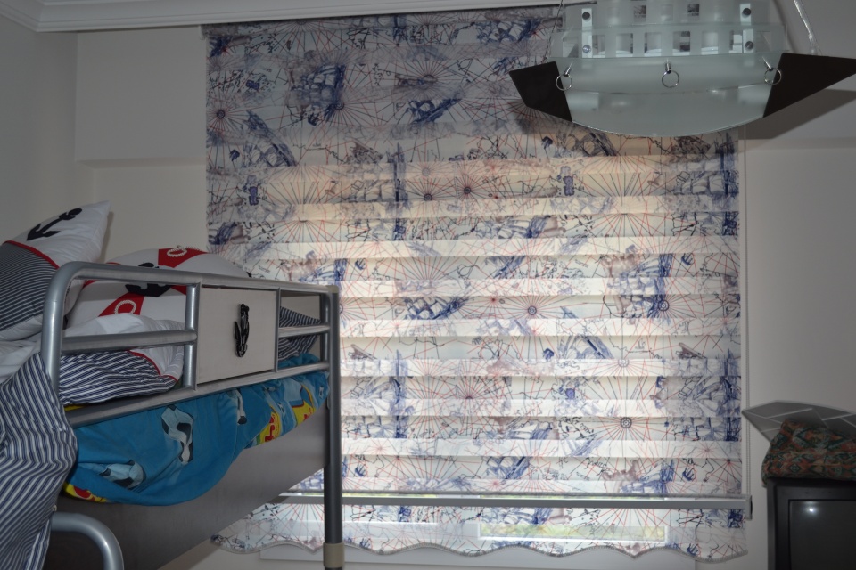 Mavi renk piri reis zebra perde Birillant / İnci Perde