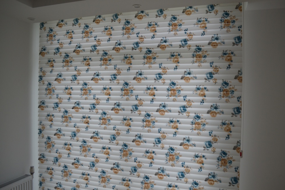 Jaluzi görünümlü çiçek desen Silüet Perde Birillant / İnci Perde
